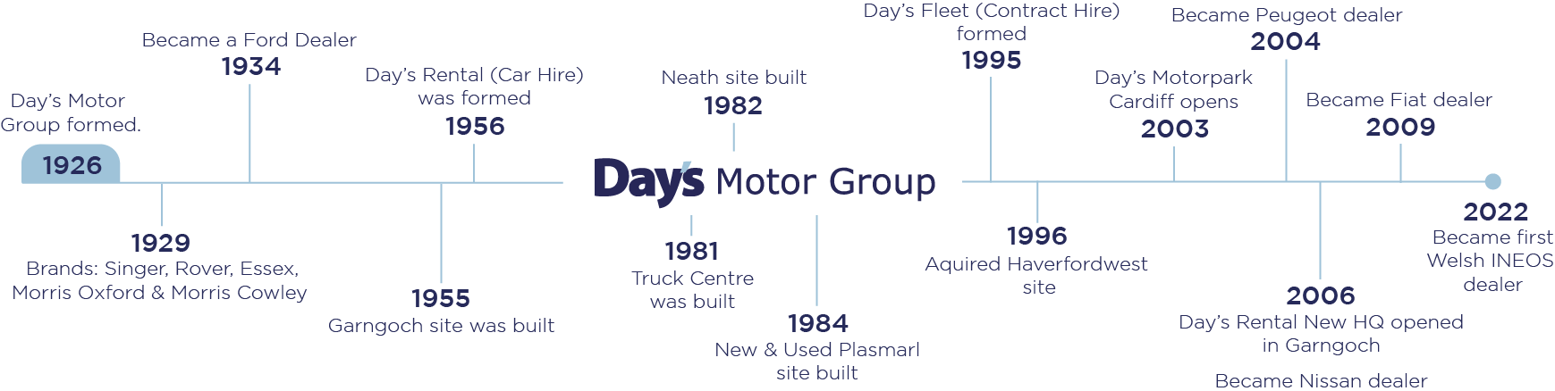 Day's Motor Group is a family-run, private company made up of three main businesses; Day's Motor Group, Day's Rental and Day's Fleet. With more than 600 employees, Day's is the largest Welsh-based dealer group and sits within the top fifty dealer groups nationally.