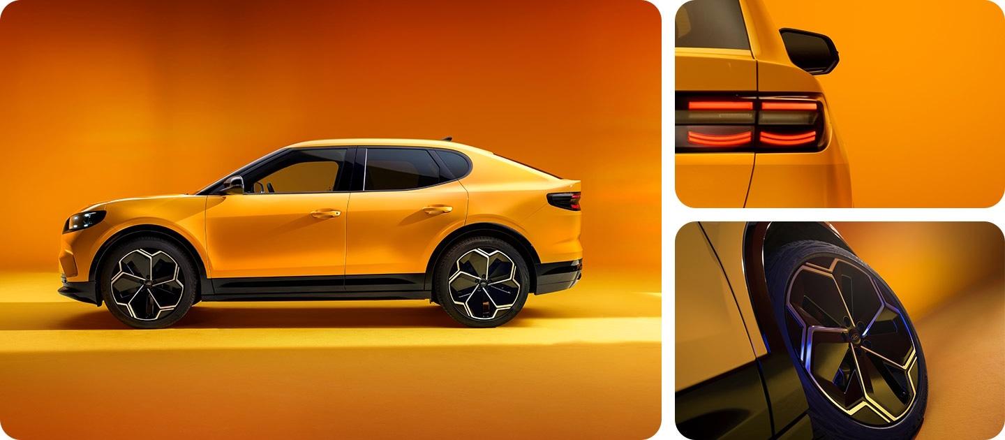 The electric Ford Capri® combines iconic sports car soul with practical SUV functionality. Assertive design, Signature LED lights and optional 21" alloy wheels complete the look.