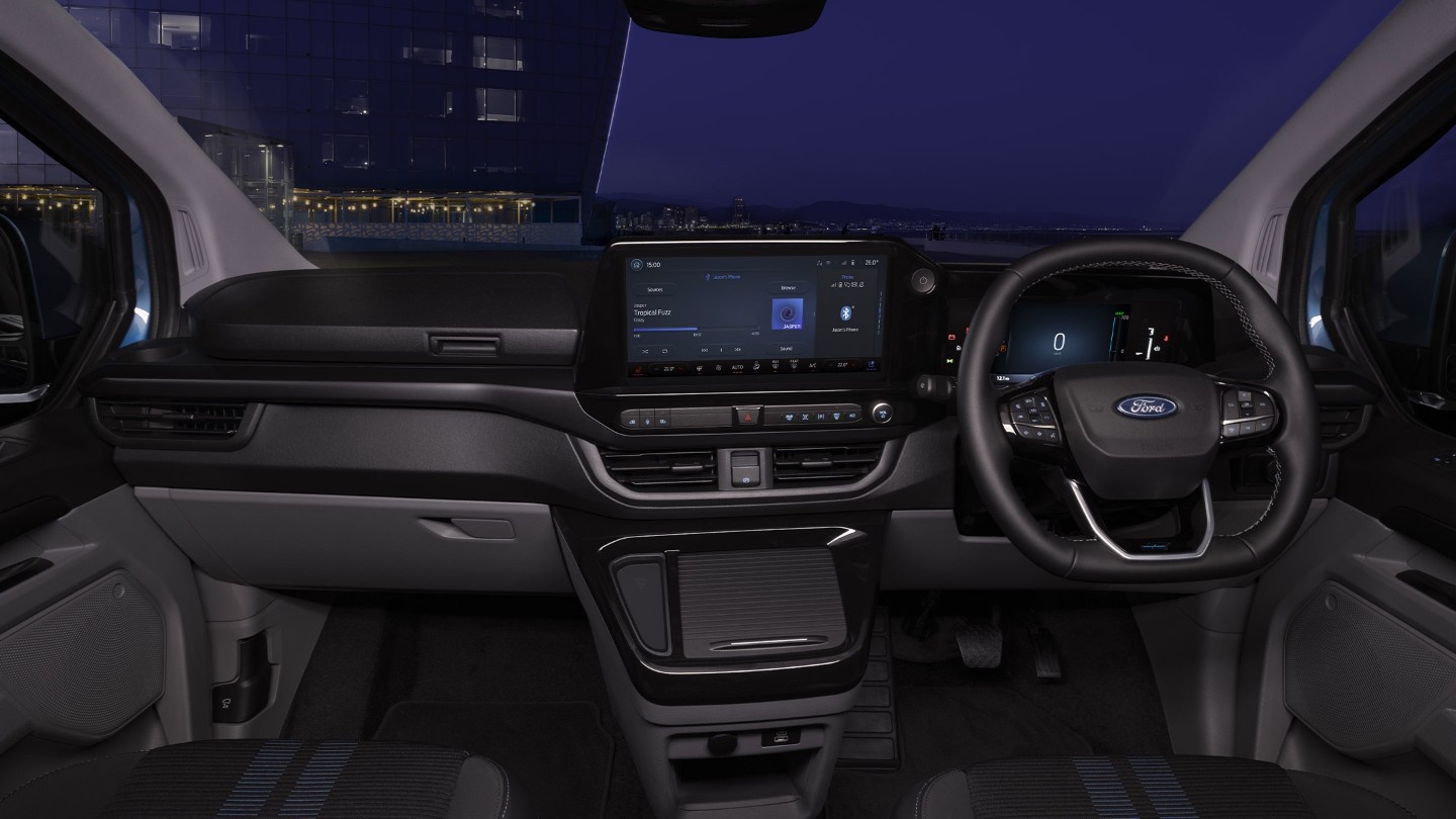 Treat your van like an office on the move. Ford SYNC 4** delivers enhanced connectivity powered by a new 5G modem, seamless smartphone integration, 13” touchscreen and conversational voice recognition as standard. And an innovative steering wheel tilt feature lets you create an angled desk when parked – ideal for mounting a laptop or eating your lunch!†††