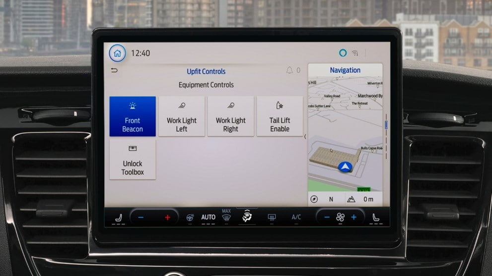 Lets drivers control aftermarket installed equipment such as beacon packs, tail lifts and even thermostats on refrigerated vehicles. Easily accessed using programmable digital soft buttons via the standard SYNC touchscreen.