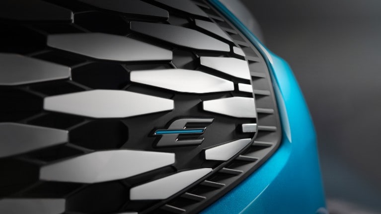 E-Transit Custom’s imposing new exterior includes signature headlights connected by an LED strip illuminating the width of the bonnet, plus a head-turning trapezoid front grille design with polygon detailing.