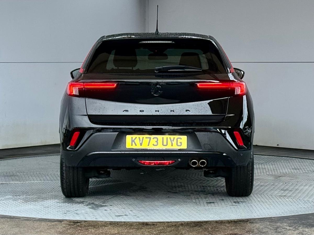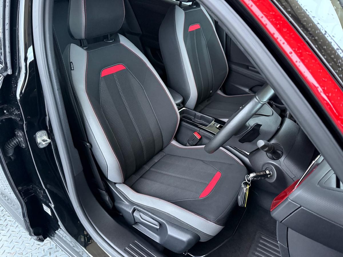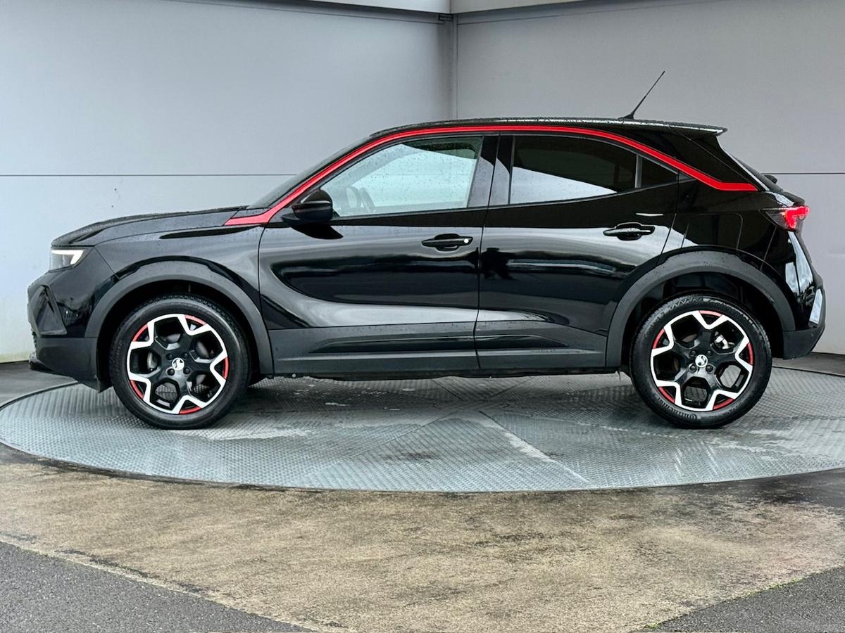 Finished in black with matching black roof, this Mokka displays a modern design complemented by 18-inch bi-colour alloy wheels featuring red accents and black detailing throughout the bodywork. The integrated black tailgate spoiler, red upper window mouldings, and black Griffin logo provide further visual appeal, while dark tinted rear windows and LED lighting at the front, rear, and daytime running add a contemporary touch. Inside, a black facia with red trim inserts, a flat-bottom leather-effect steering wheel, and light grey trim on the front doors combine to create a refined cabin environment.